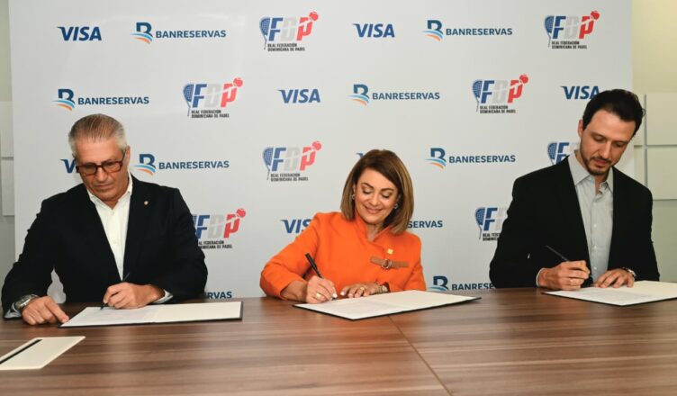 La Real Federación Dominicana de Pádel, Visa y Banreservas firmaron un acuerdo que contempla beneficios exclusivos, descuentos en la inscripción a los torneos organizados por la Federación y acceso a certificaciones especiales para sus tarjetahabientes, que contribuirán a continuar fomentando el crecimiento y organización de ese deporte en el país.
