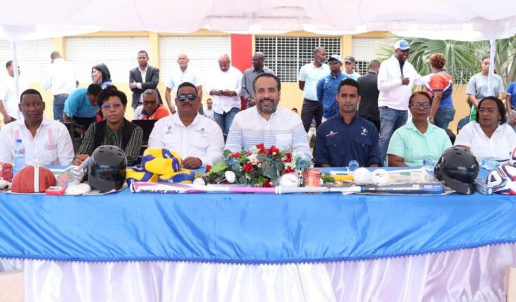 BAYAGUANA, Monte Plata.– El director ejecutivo del Instituto Nacional de Educación Física (INEFI), Alberto Rodríguez Mella, y el subdirector, Franklin Duval, entregaron este jueves una cancha remozada y utilerías para la práctica del atletismo y otros deportes en varios planteles escolares de este municipio.