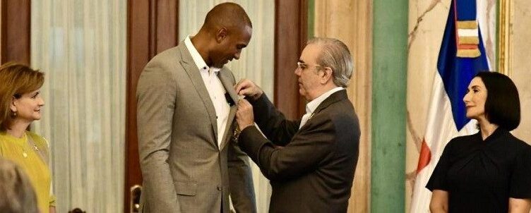 El presidente Luis Abinader le impuso la medalla al Orden al Mérito de Duarte, Sánchez y Mella, en el Gran Caballero, mediante el decreto 513-24 por su reconocido desempeño como jugador de baloncesto profesional.