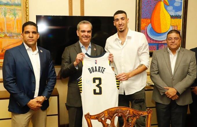 El dominicano Chris Duarte, una figura en ascenso en el baloncesto de la NBA, visitó este jueves al presidente de la República, Luis Abinader, a quien le regaló una camiseta suya con el equipo Indiana Pacers.