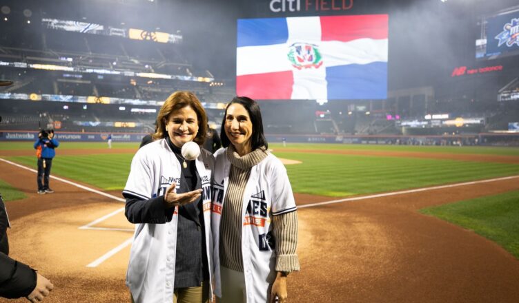 Queens NY- Con un lanzamiento de «strike» la vicepresidenta de la República Dominicana Raquel Peña realizó un lanzamiento perfecto en la inauguración de la serie “Titanes del Caribe” entre los equipos Águilas Cibaeñas y Tigres del Licey, quienes están participando en el histórico evento.